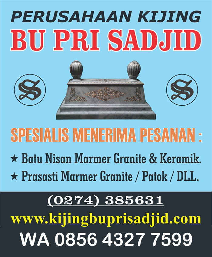 BU PRI SADJID, merupakan perusahaan UKM yang spesialis bergerak dalam bidang industri produksi batu nisan & kerajinan pahatan prasasti marmer.